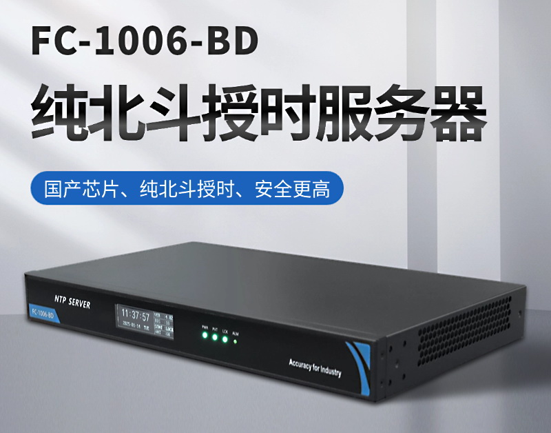 近日,,我司推出了一款纯北斗网络授时服务器FC-1006-BD,,,,采用了获得工信部认证的纯国产单北斗专业型授时芯片,,,,支持SN...